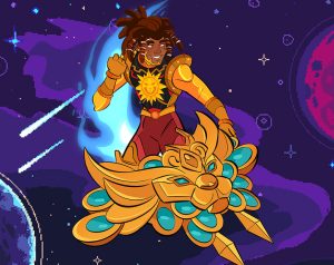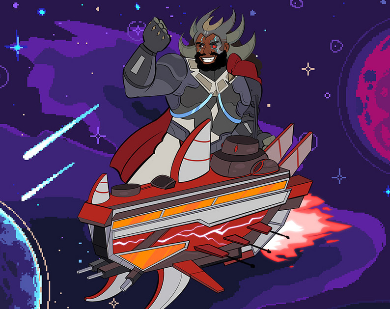 Hyperstar Fury is an old school inspired arcade game. Khamani, the hot shot pilot gets to engage in an intergalactic battle against Shango the space God of Thunder.